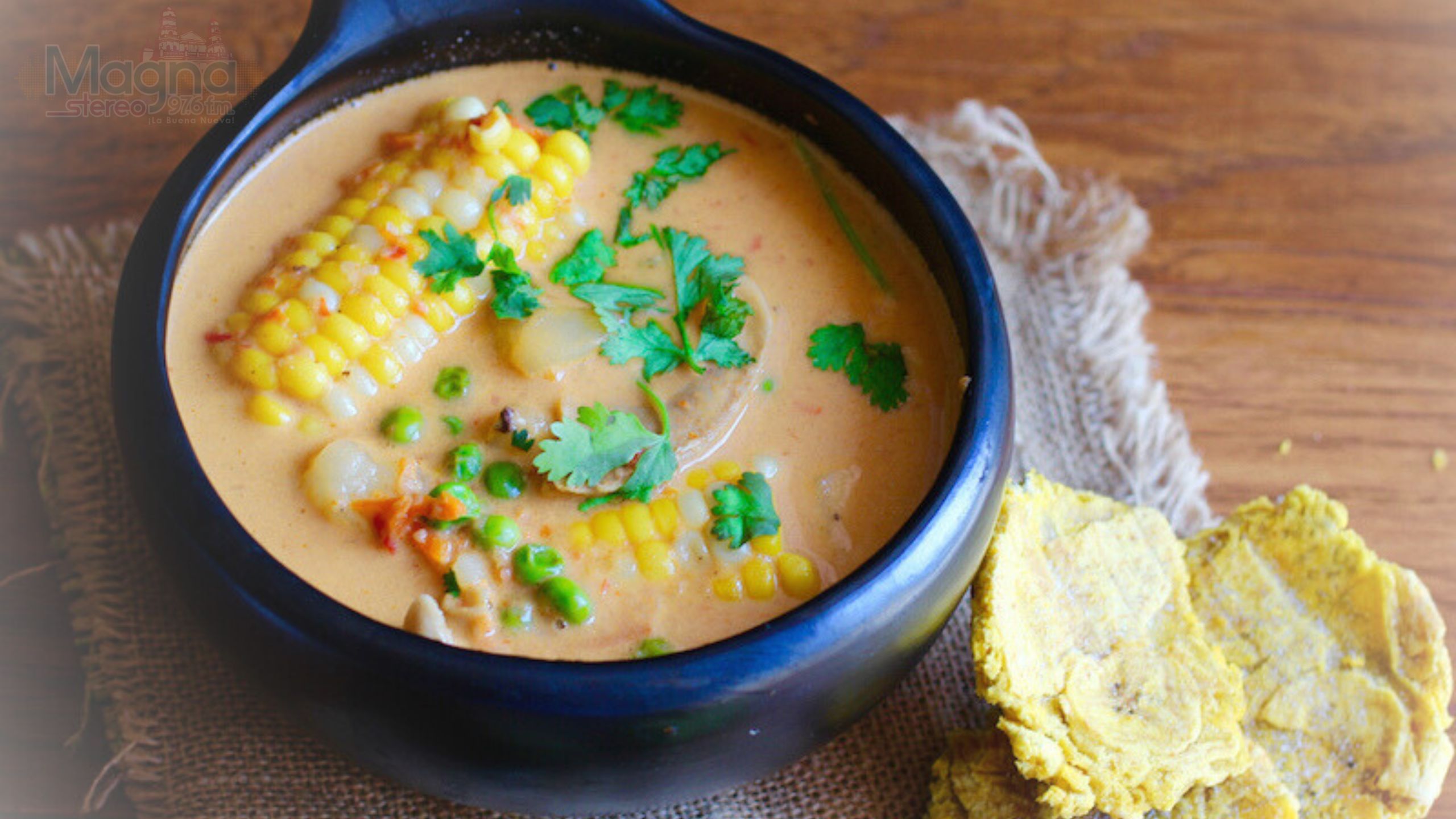 - Añadir la leche de coco y el maíz, continuar la cocción a fuego lento durante otros 5 a 10 minutos. Añadir la crema, las arvejas y cocinar por otros 5 minutos. Añadir sal y pimienta al gusto. También puede añadir más leche de coco o caldo si la sopa está demasiado espesa. Agregar el cilantro fresco y servir.